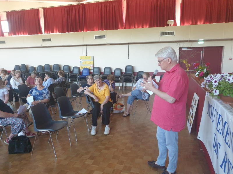 Pierre-Henri Cottard, président du MCR-Nièvre, entouré des membres du bureau diocésain, a souhaité la bienvenue à tous. Il a remercié chacun pour sa présence, malgré la chaleur ou la distance. En l’absence du père Jacques Billout, aumônier diocésain, Pierre-Henri a poursuivi avec un moment de prière, confiant les absents et les malades au Seigneur, et invoquant l’Esprit Saint pour éclairer cette journée. La prière s’est conclue avec un Notre Père, un Je vous salue Marie, et quelques chants partagés.