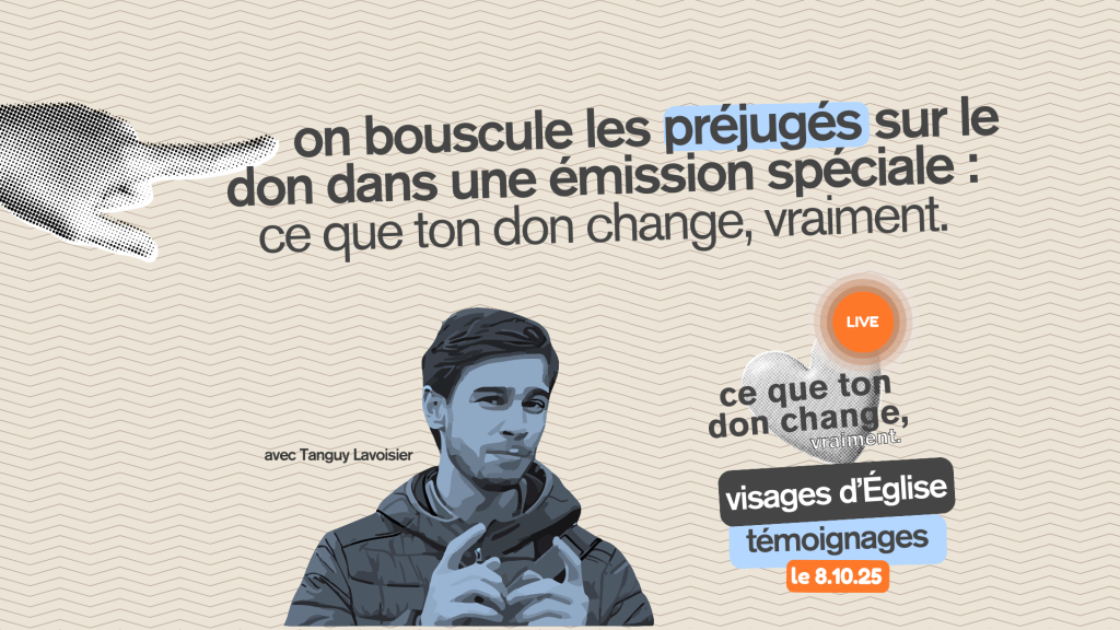 Le 8 octobre prochain, une grande soirée digitale intitulée « Ce que ton don change vraiment » sera diffusée en direct sur YouTube. Cet événement inédit mettra en lumière l’impact social, culturel et spirituel de l’Église dans notre société et s’adressera particulièrement aux jeunes, qu’ils soient pratiquants ou non.